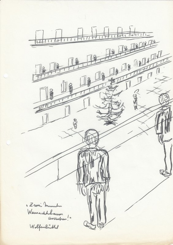 On 8 April 1945, three days before the liberation of Wolfenbüttel prison by American troops, Wilfred Jensenius was put on a transport with all the other Night and Fog prisoners held there. After a first stop in Magdeburg, the transport continued to Brandenburg-Görden prison, where the Red Army liberated the prisoners on 27 April 1945. From there, Wilfred Jensenius first went to the United Kingdom, where he spent some time in a convalescent home before returning to his family in Norway. He recorded his memories of his time in captivity in numerous drawings.