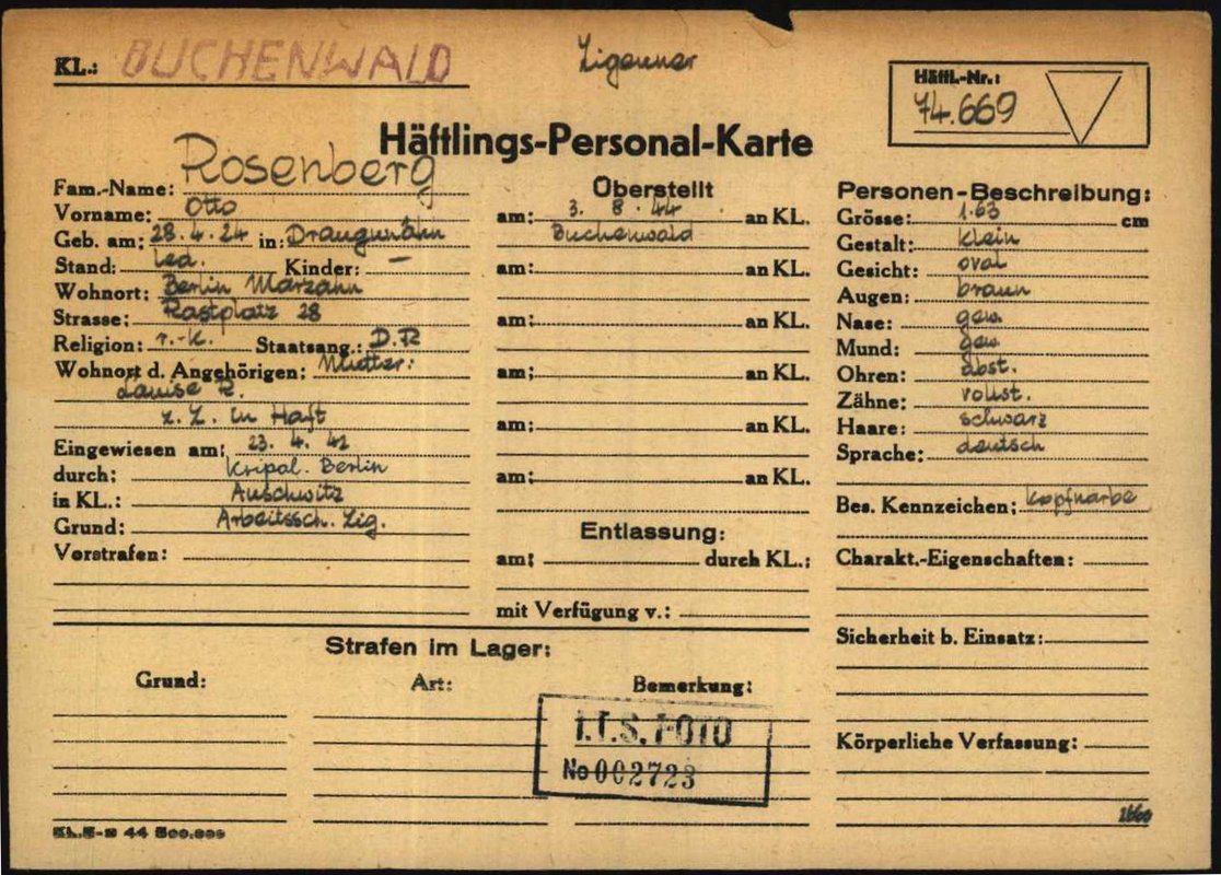 Als er wegen angeblicher Sabotage von seinen Arbeitskollegen denunziert wurde, verhaftete ihn die Polizei. Otto Rosenberg musste vier Monate in Einzelhaft im Gefängnis Moabit verbringen. Kurz vor seinem fünfzehnten Geburtstag wurde er im April 1943 in das KZ Auschwitz-Birkenau deportiert. Dort litt er unter Kälte, Hunger und Krankheit. Otto Rosenberg beteiligte sich am 16. Mai 1944 am kollektiven Widerstand gegen den geplanten Mord an allen in Birkenau inhaftierten Sinti:zze und Rom:nja.
